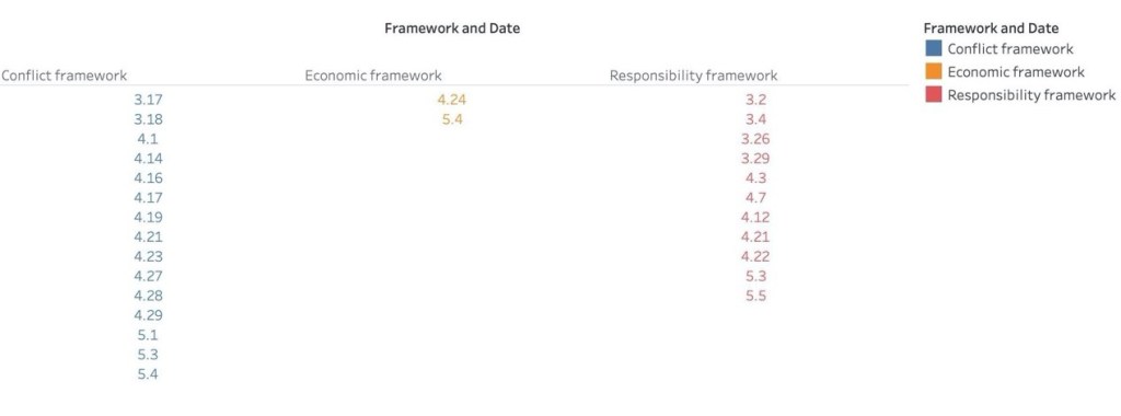 The criteria for this framework are: The report refers to the current or future economic gains or losses of a party; the news reports involve the impact of carrying out certain economic activities. Economic Consequences Framework involves topics “Covid-19 batters economic ties between the U.S. and China”. The report belonging to this framework makes up 21.87% of the total, adding another permissiveness on U.S.-China relations