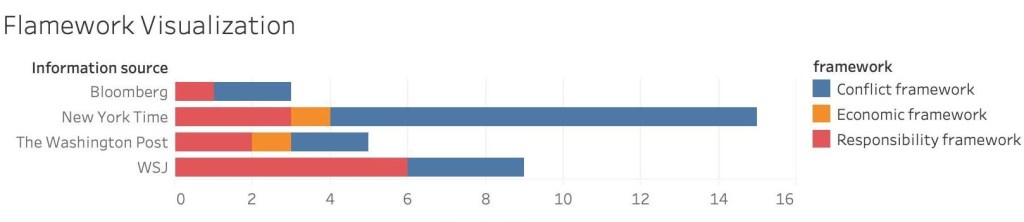 The criteria for this framework are that the reports reflect differences between different parties; one side rebukes the other; the problem or event concerns two or more parties. Conflict framework covers topic like “Chinese Political Propaganda” and “Expel American Free press to block out information”. The reports under this framework accounts for 63.5%, rendering conflict framework the most frequently reported one.