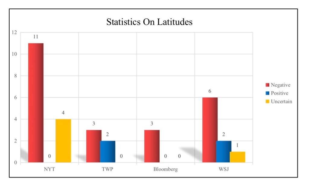 The reason why these four media are on the table is their representativeness and comprehensiveness. The research needs the most representative news reports coming from the big news organizations. These four media are famous and recognized ones in America and all of which have influential voices domestically. At the same time, the research aims to cover the news reports as comprehensively as possible. Therefore, the diverse political grands are taken into consideration. Furthermore, as pandemic effects every aspect of the society, the research select these four media with various concentrations on economics, business, and politics—multiple aspects of the bilateral relationship–to cover different topics in societal life as well as to reflect U.S.-China relations in multiple lens.