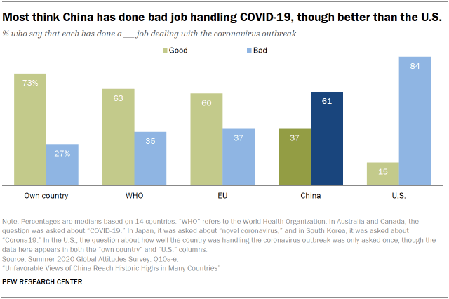 Amid the COVID-19 pandemic, recent PEW research found rising unfavorable views of China reach historical high and much criticism of China’s handling of the pandemic (fig 2), but does perception equal reality?