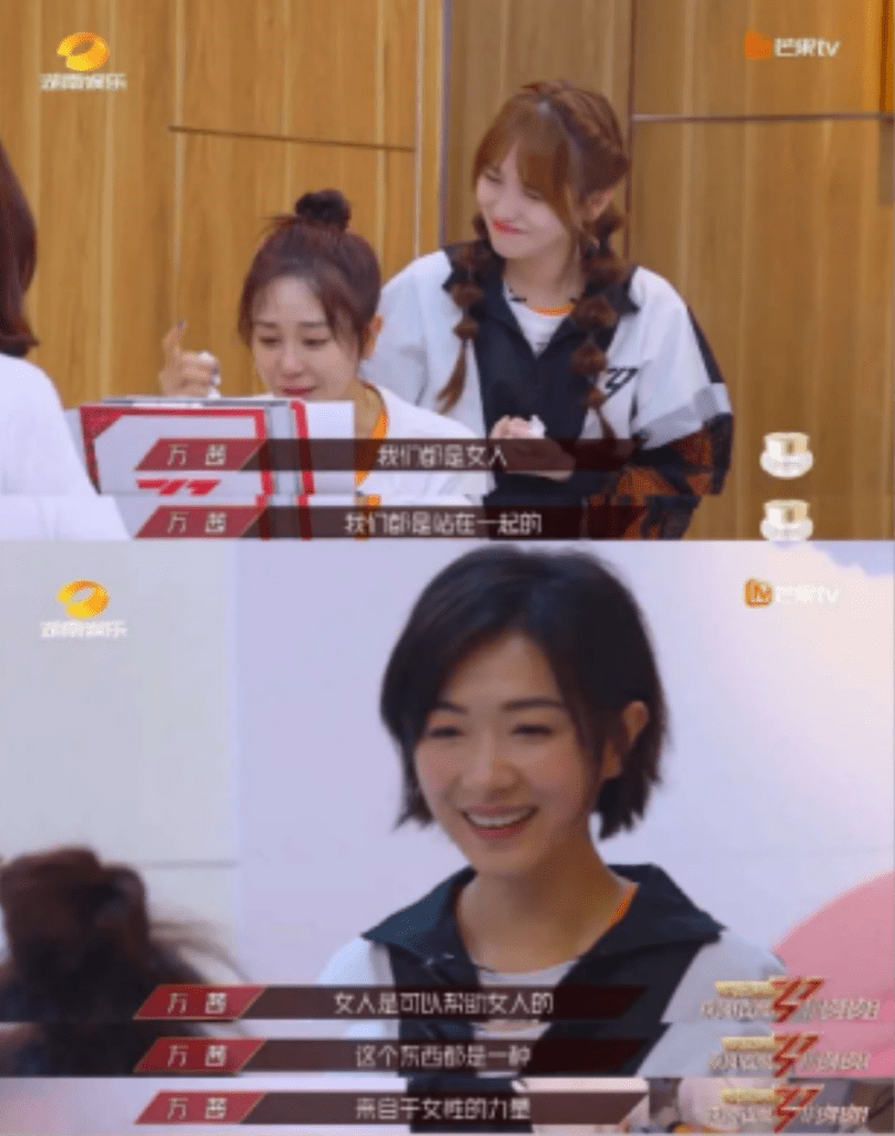 In June 2020, in a reality show called “Sisters Who Brave the Winds and Waves”, all 30 years old “sisters” worked together for one goal – to become a girl group. During one of the rehearsals, actress Hai Lu bust into tears because of the challenging dance, and Wan Xi comforted her, “We are all women, we are all standing together. We as women support each other, and it is the strength of women.”