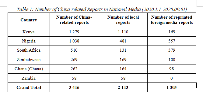 This study selected six African countries: Kenya, Nigeria, South Africa, Zimbabwe, Ghana, and Zambia as target countries for the purpose of analyzing. In order to provide a comprehensive report, the study examined a large number of mainstream media reports related to China between January 1 and September 1, 2020, as the research subject. The study also includes interviews of relevant people from different classes in each country.