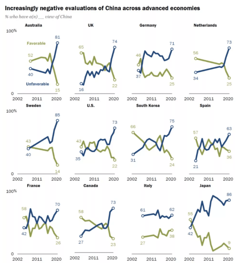 More worryingly, Britain is not alone in being anti-Chinese. The United States, France, Australia, and many other countries now have a lot of misunderstanding, suspicion, and even hostility towards China. Polls show that after COVID-19, the world’s negative view of China has reached a record high.